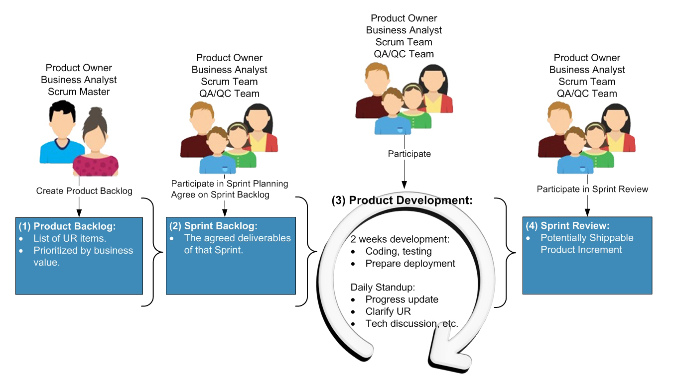 The following sections briefly introduces the practical implementation of how we applied Scrum methodology to support business needs.